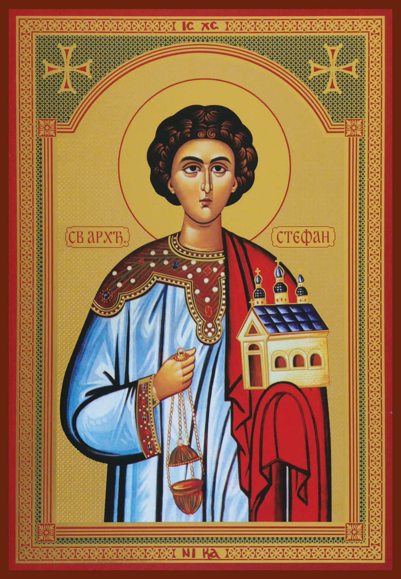 Сродник апостола Павла, и Јеврејин од оних Јевреја, који живљаху по областима јелинским. Беше Стефан први од седам ђакона, које апостоли свети рукоположише и поставише на службу око помагања сиротних у Јерусалиму. Зато се и прозва архиђаконом. Силом вере своје Стефан чињаше чудеса велика међу људима. Злобни Јевреји препираху се с њим, но биваху увек побеђивани његовом мудрошћу и силом Духа, који кроз њега дејствоваше. Тада посрамљени Јевреји, навикнути на потворе и клевете, узбунише и народ и старешине народне против невиног Стефана, клеветајући га као да је хулио на Бога и на Мојсеја. Брзо нађоше лажне сведоке који то потврдише. Тада Стефан стаде пред народ, и сви видеше лице његово „као лице ангела“ (Дап 6, 15), то јест лице му беше озарено благодатном светлошћу као негда Мојсеју, кад је с Богом говорио. И отвори Стефан уста своја и изређа многа доброчинства и чудеса Божја, која Бог учини у прошлости народу израиљском као и многе злочине и противљење Богу од стране тога народа. Нарочито их изобличи за убиство Христа Господа назвавши их „издајницима и крвницима“ (Дап 7, 12). И док они шкргутаху зубима, Стефан погледа и виде небо отворено и славу Божју. И то што виде, он објави Јеврејима: „Ево видим небеса отворена и Сина Човечјега гдје стоји с десне стране Бога“ (Дап 7, 56). Тада га пакосници изведоше ван града и убише камењем. Међу мучитељима његовим беше и његов сродник Савле, доцније апостол Павле. У то време стајаше у даљини на неком камену Пресвета Богородица са светим Јованом Богословом и гледаше мучеништво овога првог мученика за истину Сина њеног и Бога, молећи се Богу за Стефана. То се десило на годину дана после силаска Духа Светога на апостоле. Тело светог Стефана тајно узе и сахрани на своме имању Гамалил, кнез јеврејски и потајни хришћанин. Тако славно сконча овај првенац међу мученицима хришћанским и пресели се у Царство Христа Бога.