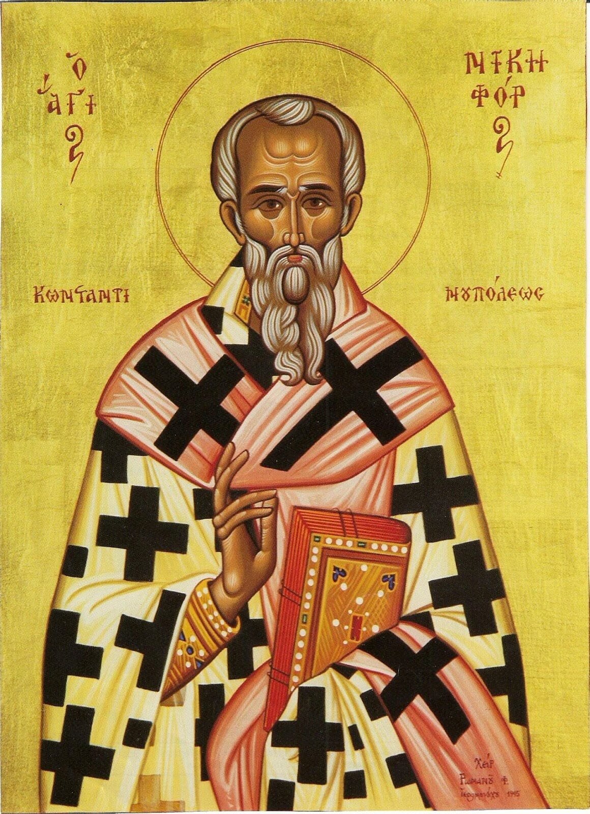 Управљаше, мудро и ревносно, црквом светом као највећи архипастир цариградски. Када Лав Јерменин уста против икона, он се успротиви цару, и најпре цара саветоваше а по том изобличаваше. Зато га нечестиви цар прогна на острво Проконис. На том острву беше манастир, који сам Никифор беше саградио у част светог Теодора. И ту проведе овај исповедник вере православне тринаест година, а потом представи се и оде ка Господу 827. године. Пошто изгибоше сви цареви иконоборци, и на царски престо седе Михаил с мајком Теодором, а на патријаршијски би повраћен патријарх Методије, тада (846. године) пренесоше се мошти светог Никифора са Прокониса у Цариград, и беху положене прво у цркву свете Софије, из које је за живота и изгнан био, а после у цркву Светих Апостола. Главно празновање овога великог јерарха бива 2. јуна, а 13. марта празнује се откриће и пренос његових нетљених моштију. Беше свети Никифор изгнан из Цариграда 13. марта, и опет 13. марта, после деветнаест година, мошти му пренете у престоницу.