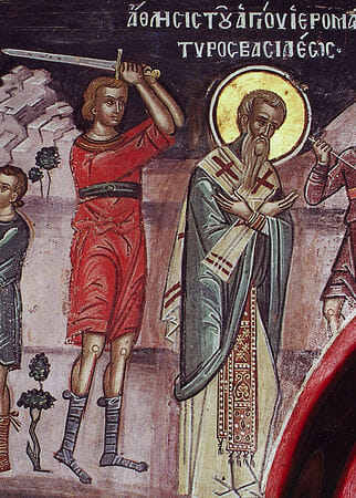 Ликиније, зет цара Константина, чијом сестром беше ожењен, претвараше се пред великим царем као хришћанин, но када доби од цара на управу цео Исток, он поче најпре тајно а после јавно гонити хришћане и утврђивати идолопоклонство. Жена његова туговаше због тога веома, но не може одвратити мужа свога од нечестија. Предавши се идолопоклонству, Ликиније се предаде безмерно свима страстима, а највише женонеистовству. При нападу ове нечисте страсти он хтеде оскврнити девицу Глафиру, која стајаше у служби царичиној. Ова се пожали царици, и царица је тајно посла из царског двора у Никомидији у област Понтијску. Девица достиже град Амасију, и ту би срдачно примљена од епископа Василија и осталих хришћана. Беше Глафира врло радосна што је Бог спасе у девичанству и писаше о том царици. И царица се радоваше и шиљаше јој новаца за храм Амасијски. Но једно писмо Глафирино, упућено царици, паде у руке царском евнуху, који га показа цару Ликинију. Сазнавши цар где се налази Глафира, одмах посла да се доведе у Никомидију, и она и епископ. У међувремену умре Глафира, те војници доведоше само Василија везана. После мука и тамнице блажени овај муж би посечен и бачен у море, 322. год. Његови клирици, по указању ангела Божјега, нађоше му тело близу града Синопа, извукоше из воде помоћу рибарских мрежа, и пренеше у Амасију, где га чесно сахранише у храму, који он својим трудом и подиже. Цар Константин диже војску на Ликинија, победи га, ухвати и посла на заточење у Галију, где сконча свој богомрски живот.