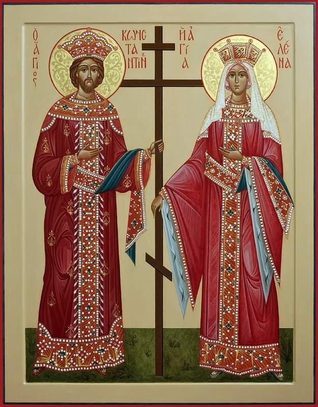 Родитељи Константинови беху цар Констанције Флор и царица Јелена. Флор имаше још деце од друге жене, но од Јелене имаше само овога Константина. Три велике борбе имаше Константин кад се зацари: једну против Максенција, тиранина у Риму, другу против Скита на Дунаву и трећу против Византинаца. Пред борбу са Максенцијем, када Константин беше у великој бризи и сумњи у успех свој, јави му се на дану пресјајан крст на небу, сав окићен звездама, и на крсту стајаше написано: овим побеђуј. Цар удивљен нареди да се скује велики крст, сличан ономе што му се јави, и да се носи пред војском. Силом крста он задоби славну победу над бројно надмоћним непријатељем. Максенције се удави у реци Тибру. Одмах потом Константин изда знаменити Едикт у Милану 313. године, да престану гоњења хришћана. Победивши Византинце, он сагради диван престони град на Босфору, који се од тада прозва Константинопољ. Но пред тим Константин паде у тешку болест проказну. Жречеви и лекари саветоваху му као лек купање у крви заклане деце. Но он то одби. Тада му се јавише апостоли Петар и Павле и рекоше му да потражи епископа Силвестра, који ће га излечити од страшне болести. Епископ га поучи вери хришћанској и крсти, и проказа ишчезе са тела царевог. Када наста раздор у Цркви због смутљивог јеретика Арија, цар сазва I васељенски сабор у Никеји 325. године, где се јерес осуди, а Православље утврди. Света Јелена, благочестива мајка царева, ревноваше много за веру Христову. Она посети Јерусалим и пронађе Часни Крст Господњи, и сазида на Голготи цркву Васкрсења и још многе друге цркве по Светој Земљи. У својој осамдесетој години представи се ова света жена Господу 327. године. А цар Константин надживи своју мајку за десет година и упокоји се у својој шездесет петој години, у граду Никомидији. Тело његово би сахрањено у цркви Светих Апостола у Цариграду.