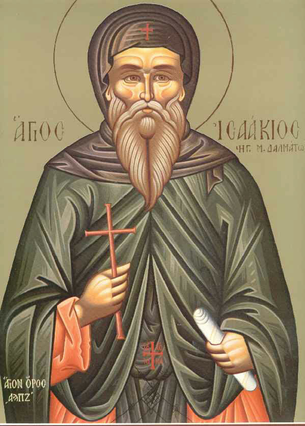 У време цара Валента би велико гоњење Православља од стране аријана, које и сам цар помагаше. Чувши за ово гоњење, Исакије, пустињак негде на Истоку, остави пустињу и дође у Цариград да храбри правоверне и да изобличава јеретике. Баш у то време пође цар Валент с војском на север против Гота, који се од Дунава спуштаху ка Тракији. Исакије изађе пред цара и рече му: „Царе, отвори цркве правоверним, и Бог ће благословити пут твој!“ Но цар се оглуши о старца и продужи пут свој. Сутрадан опет истрча Исакије пред цара и опет му понови опомену своју, и умало цар не послуша старца, да га у том не спречи неки његов саветник припадник Аријеве јереси. Трећи дан истрча Исакије пред цара, ухвати коња царевог за узду и мољаше цара, да да слободу Цркви Божјој, и прећаше казном Божјом, ако се успротиви молби његовој. Разјарен цар нареди те старца бацише у неку пропаст од блата и трња. Но ангела три јавише се и извукоше старца из пропасти. Четврти дан изађе Исакије пред цара и прорече му грозну смрт, ако не да слободу православним: „Говорим ти, царе, одвешћеш војску на варваре, но нећеш одолети варварима, побећи ћеш испред њих, али ћеш бити ухваћен и жив сажежен“. Тако се све и зби. Варвари исекоше грчку војску као траву, а цар побеже са оним својим саветником, аријанцем, и сакри се у једну кошару. Варвари стигоше на то место, и сазнавши где је цар, опколише кошару, и запалише је, и изгори цар Валент са саветником својим. Потом се зацари цар Теодосије Велики, који чу за Исакија и његово испуњено пророчанство. Призва га цар к себи и поклони му се. Пошто се мир зацари у Цркви, и аријанци бејаху прогнани, хтеде се Исакије вратити у своју пустињу, али би умољен те оста у Цариграду. Неки велможа Сатурнин сагради му обитељ, где се старац до смрти подвизаваше, чинећи многа чудеса. Обитељ се напуни монасима и постаде великим манастиром. Пред смрт Исакије одреди за игумана Далмата, ученика свога, по коме се та обитељ доцније и назва далматска. И пресели се богоугодни старац Исакије око 383. године у вечност, да се наслађује гледањем лица Божјег.