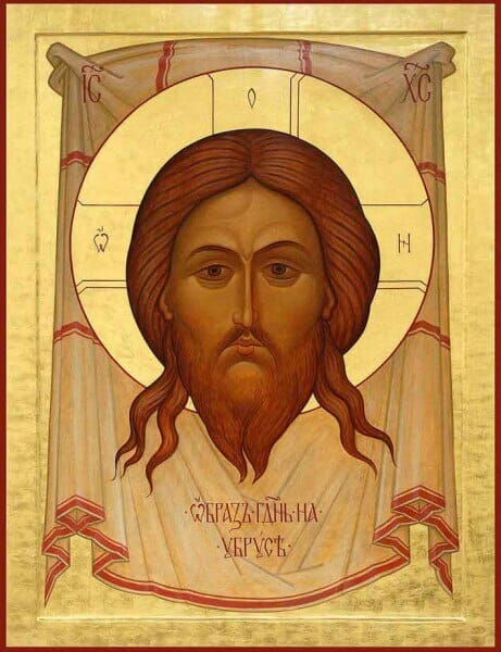 У оно време када Господ наш проповедаше Јеванђеље и исцељиваше сваку болест и сваки недуг на људима, беше у граду Едеси, на обали Еуфрата реке, кнез неки Авгар, сав прокажен губом. Он чу за Христа, Исцелитеља од сваке муке и болести, па посла неког живописца Ананију у Палестину с писмом Христу, у коме Авгар мољаше Господа да дође у Едесу и да га исцели од губе. У случају да Господ не могадне доћи, нареди кнез Ананији да живопише лик Његов и донесе, верујући да ће му тај лик повратити здравље. Господ одговори, да не може доћи, јер се приближаваше време Његовог страдања – узе убрус, убриса Своје лице, и на убрусу уписа се савршено пречисти лик Његов. Тај убрус предаде Господ Ананији с поруком, да ће се кнез од њега исцелити, али не сасвим, због чега ће Он њему доцније послати посланика, који ће збрисати и остатак болести његове. Примивши убрус кнез Авгар га целива, и губа спаде са свега његова тела, но остаде мало од ње на лицу његовом. Доцније апостол Тадеј проповедајући Јеванђеље дође Авгару, исцели га потајно и крсти га. Тада кнез полупа идоле, који стајаху пред капијом града, и над капијом стави онај убрус с ликом Христовим, налепљен на дрво, уоквирен у златан рам и окићен бисером. Још написа кнез испод иконе на капији: „Христе Боже, нико се неће постидети, ко се у Тебе нада“. Доцније, један од праунука Авгарових обнови идолопоклонство. И епископ тога града дође ноћу и зазида ону икону над капијом. Векови су од тада прошли. У време цара Јустинијана нападе Персијски цар Хозрој на Едесу, и град беше у великој тескоби. Деси се тада да епископ Едески Евлавије имаде виђење Пресвете Богородице, која му објави тајну о зазиданој и заборављеној икони. Икона би пронађена, и силом њеном војска Персијска побеђена.