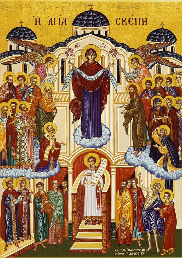 Од увек је црква прослављала Пресвету Богородицу као покровитељку и заштитницу рода хришћанскога, која својим ходатајственим молитвама умилостивљава Бога према нама грешнима. Безброј пута показала се очигледно помоћ Пресвете Богородице како појединцима тако и народима, како у миру тако и у рату, како у монашким пустињама тако и у многољудним градовима. Догађај који црква данас спомиње и празнује доказује само то постојано покровитељство Пресвете Богородице над родом хришћанским. 1. октобра 911. год. у време цара Лава Мудрога (или Философа) било је свеноћно бдење у Богородичиној цркви Влахерне у Цариграду. Народа је била пуна црква. У позадини цркве стајао је св. Андреј Јуродиви са својим учеником Епифанијем. У четврти сат ноћи појави се Пресвета Богородица изнад народа са распростртим омофором на рукама, као да том одећом покриваше народ. Беше обучена у златокрасну порфиру и сва блисташе у неисказаном сјају, окружена апостолима, светитељима, мученицима и девицама. Св. Андреј видећи то јављање показа руком Епифанију блаженом, и упита га: „видиш ли, брате, Царицу и госпођу над свим, како се моли за сав свет?“ Одговори Епифаније: „видим, оче, и ужасавам се!“ Због тога се установи ово празновање, да нас подсети како на тај догађај тако и на стално покровитељство Пресвете Богородице, кад год ми то покровитељство, тај покров њен молитвено иштемо у невољама.