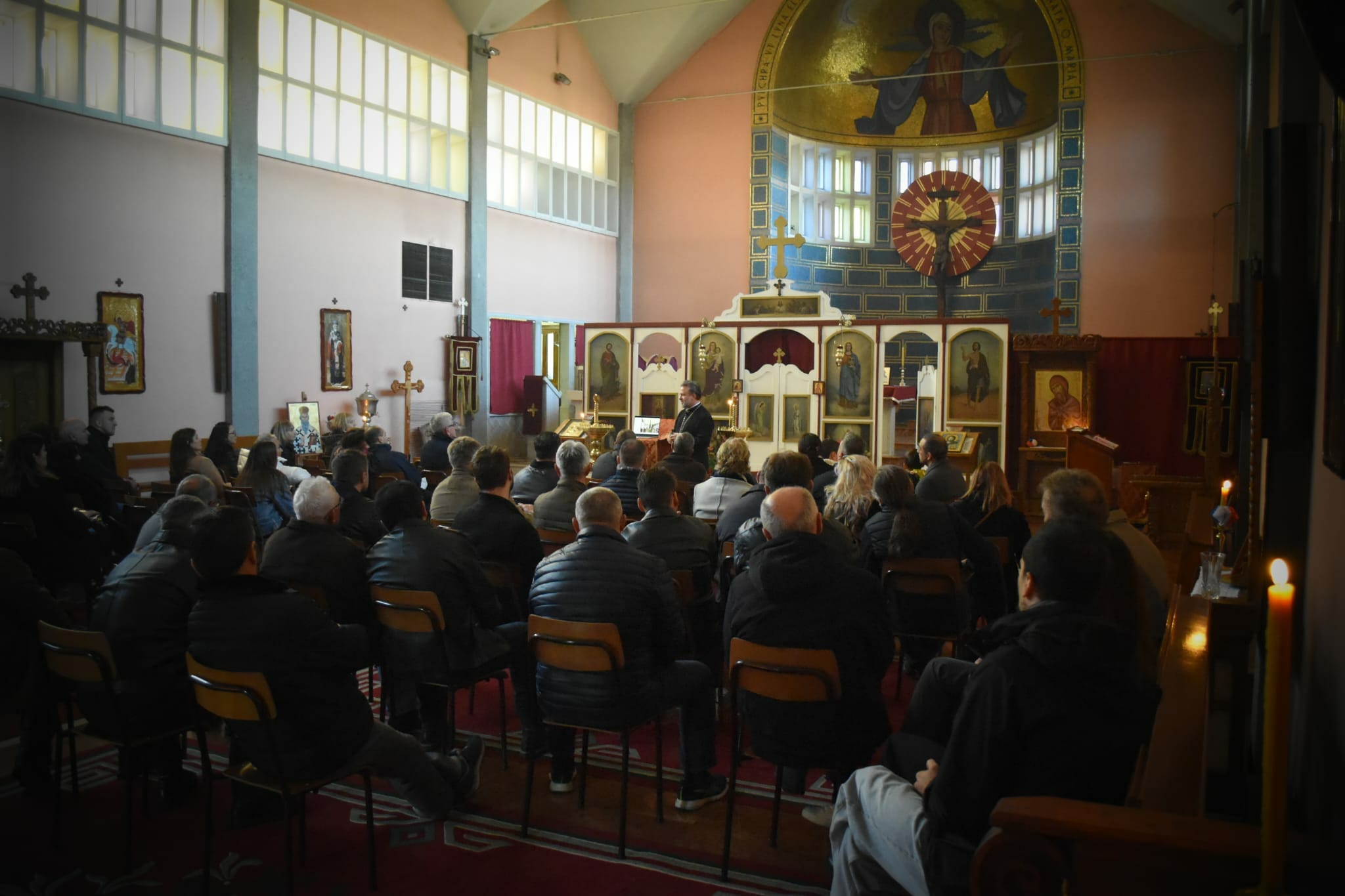 Велики број деце и верних људи се причестио, а након Литургије је о. Мирослав као сарадник Српског института у Цириху, одржао предавање о Хиландарским иконама из пројекта: Средњевековна српска уметност – лепота античког наслеђа на Балкану.